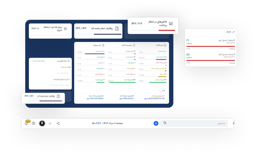 در سریع ترین زمان ممکن فاکتور و پیش فاکتور و قرار داد و پروژه هارو برای مشتریان خود تعریف کنید.
